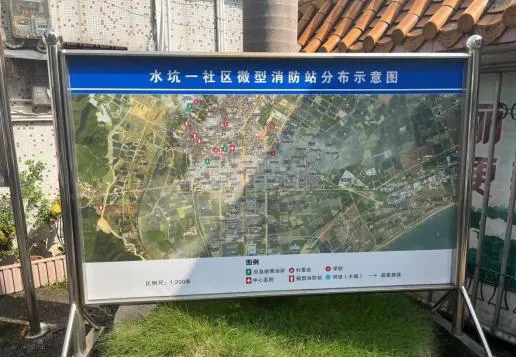 ▲水坑一社区整合防灾减灾救灾资源,绘制微型消防站分布示意图