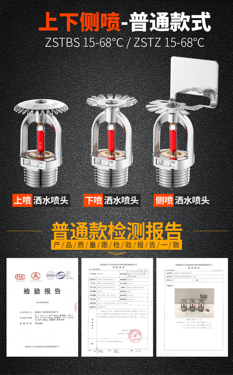 桂安消防喷淋头4分6分15/68度93度141度隐蔽喷头暗装上喷下喷侧喷