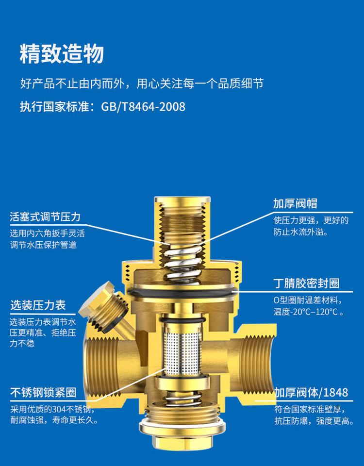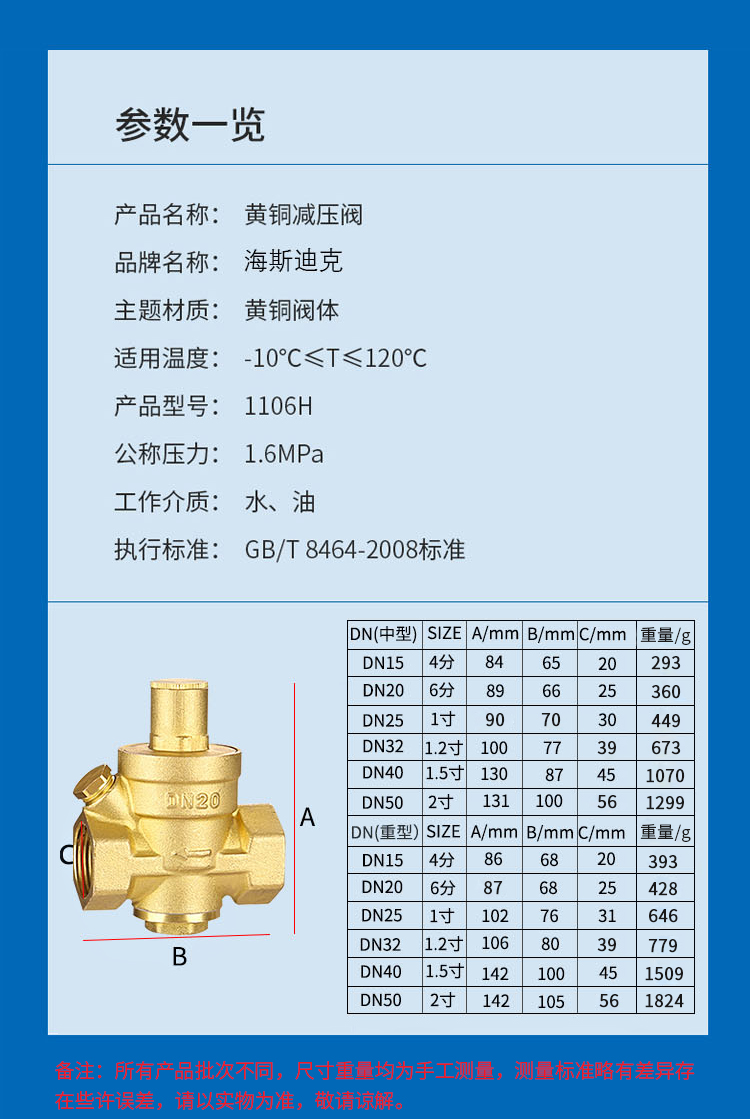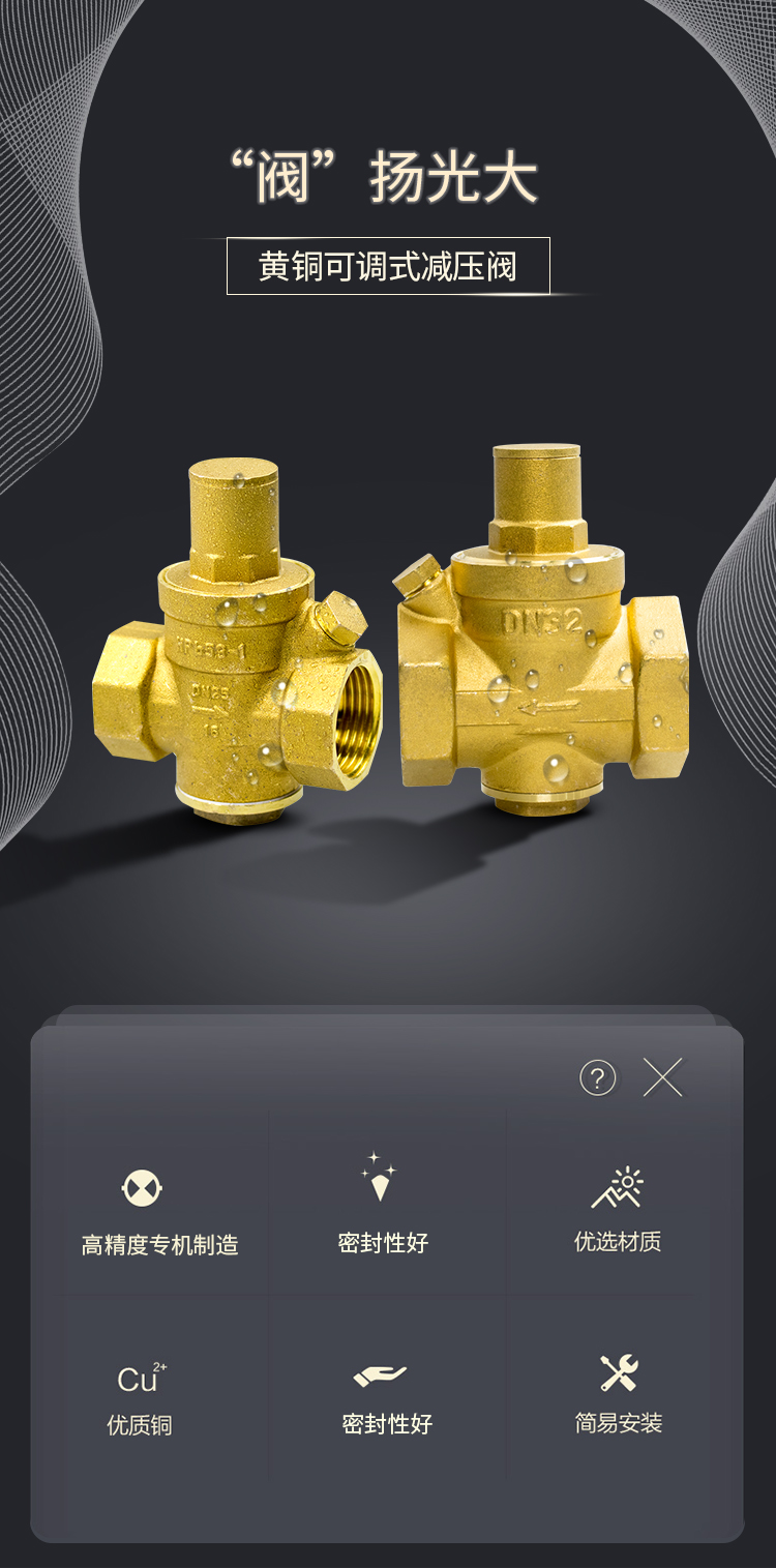 海斯迪克 gnjz-5305 加厚黄铜可调式减压阀 过滤型 自来水单向恒压稳压阀 DN50(中型) 接头